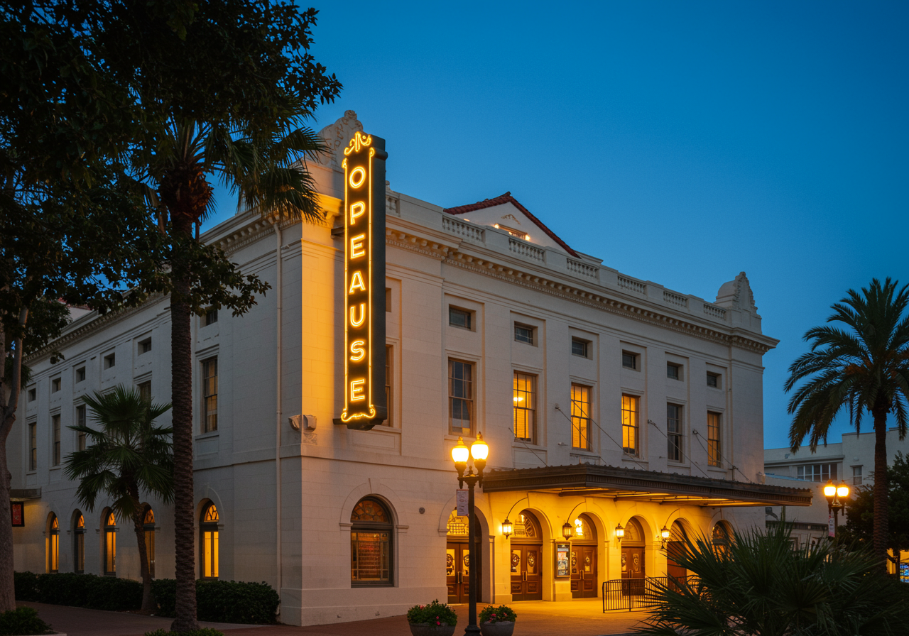 Open year-round on Saturdays from 7 a.m. to 1 p.m., the Farmer’s Market is conveniently located near downtown, local shopping, and luxury condos. This popular, family-friendly attraction offers fresh produce from local farms along with organic produce, plants, and artisanal goods. In addition to the vendors, the market also features great coffee and pastries, live music and other entertainment, making it a fun and lively place to spend a Saturday morning.The Sarasota Opera House
