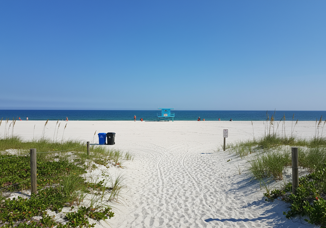 The renowned white sand of Siesta Key Beach, made of ninety-nine percent quartz, appears almost pure white sand and always stay cool to the touch. The southern portion called Crescent Beach extends to the sea wall and Point of Rocks, an area featuring rocks, coral and an attractive marine life.